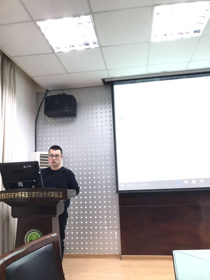 期间,宋戈阳作了题为《Centrifuge Study in Soil and Structure Interaction due to Tunneling》的报告,讨论了英国隧道工程存在的问题及如何通过离心机开展模拟实验;张丁丁作了题为《采矿工程物理相似模拟试验中耦合场光纤传感监测》的报告。会后,宋博士就相关问题与参会人员交流和讨论。