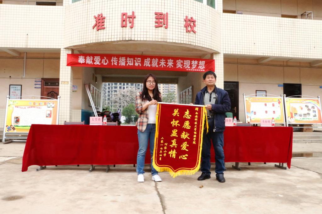 为深入贯彻中省思政会议精神,夯实实践育人抓手,4月25日,学院团委在临潼区付家小学举办老员工志愿服务基地揭牌暨志愿服务活动启动仪式。院团委书记万超、副书记王雪琪、付家小学董事长侯平利、付家小学全体教师员工以及公司老员工志愿者参加了启动仪式。