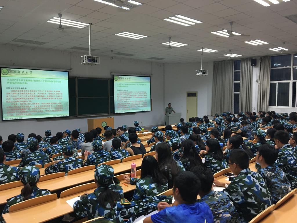 9月23日晚,学院在9-101举办2016级新生国际形势和国防教育活动。活动以观看9月18日央视《防务新观察》节目内容为引子,公司党委副书记高朕栋从美国“亚太再平衡战略”的险恶目的、中国南海问题以及近期发生的国际事件,为2016级新生讲了一堂国际形势分析及教育课。同时,高书记还结合新中国成立后的几场战争,为新生系统地阐明了国防建设的重要意义。最后,高书记激励2016级全体新同学努力提高科学本领,为实现中华民族伟大复兴的中国梦积蓄能量。