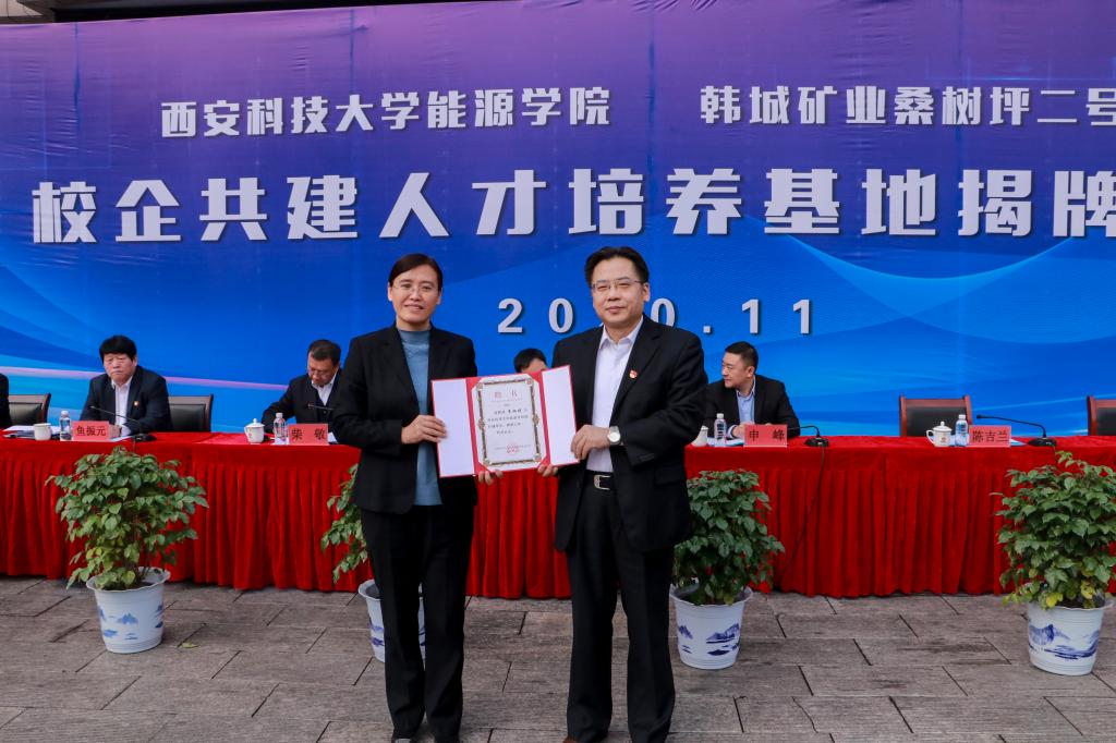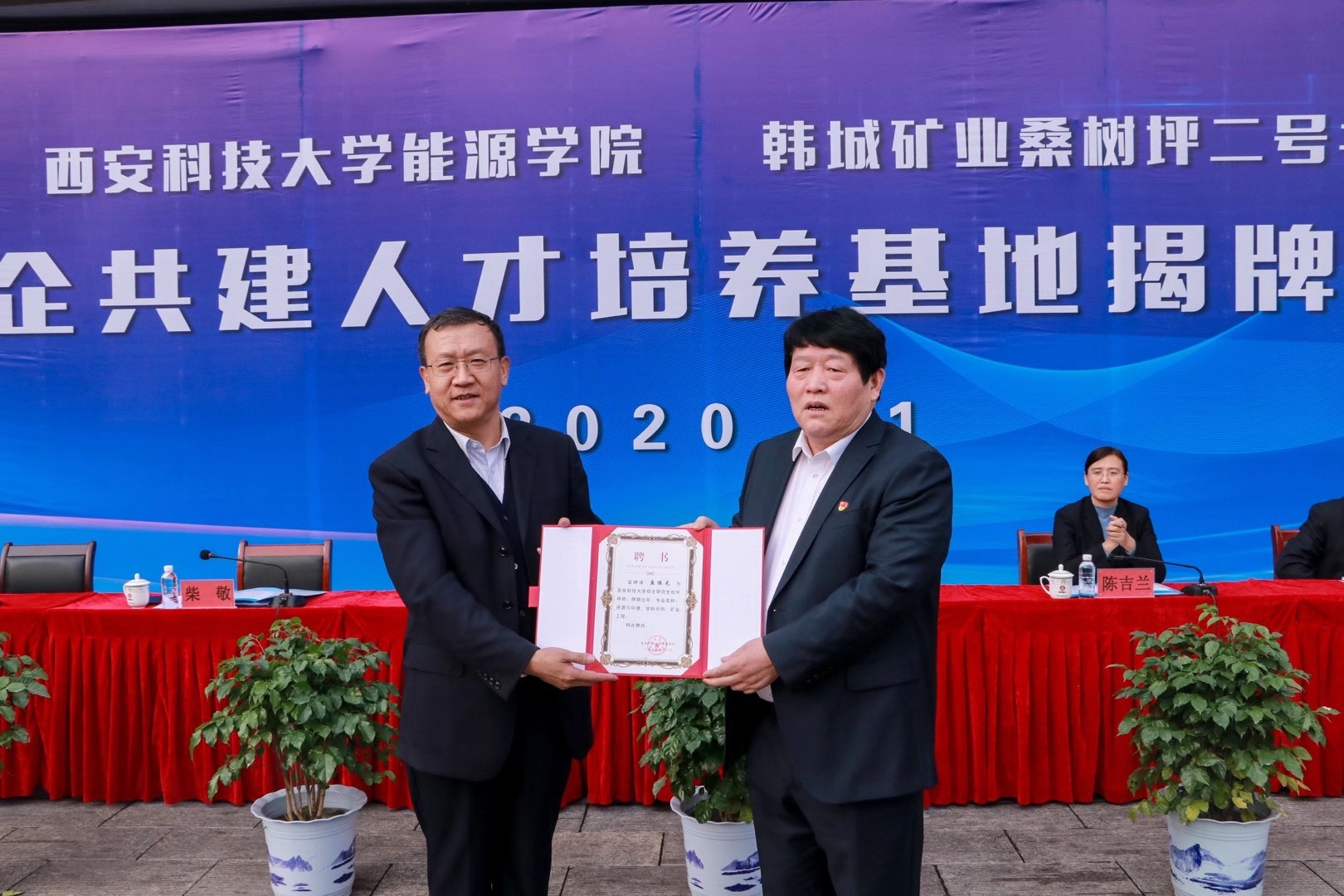 11月5日,999策略白菜网站大厅与韩城矿业公司桑树坪二号井校企共建人才培养基地揭牌仪式在韩城矿业公司桑树坪二号井隆重举行。韩城矿业公司党委副书记、工会主席申峰,党委委员、副总经理刘新民,桑树坪二号井党委书记李炳好、矿长鱼振元,公司党委书记陈吉兰、经理柴敬、副经理解盘石,二号井全体矿领导、各部门负责人及999策略白菜网站大厅学工办、团委、采矿系负责人,2021届毕业生代表共200余人参加了仪式。