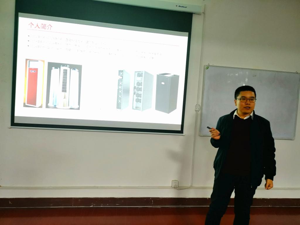 建环01级韩义(华为数据中心机房空调产品开发部经理)做了有关“建环专业在机房空调研发行业234”的报告,建环09级刘涛(西北综合勘察设计研究院文旅发展研究中心所长)做了有关“过往皆为序章,未来一切可期”的报告,建环09级刘炯(秦和暖通公司总经理)结合自己的创业做了一场“创业之我见”的报告,建环12级朱林涛(依柯尔绿色建筑)做了有关“绿色建筑与健康建筑”的报告。