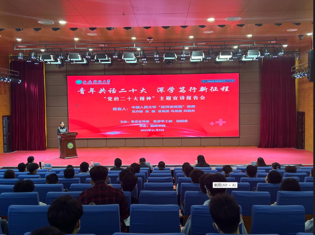 报告会分“二十大·这十年”“延安情·陕公魂”“新时代·新青年”三个篇章进行,“延河讲师团”五位讲师分别做了题为《奋进新征程,建功新时代——青年共话党的二十大精神》《“妈,把我献给祖国吧”——孔迈致母亲》《在继承和弘扬延安精神中 坚定历史自信 增强历史主动》《请党放心,强国有我——〈觉醒年代〉的书生意气与青年担当》《白鹤滩的故事》的主题报告,报告主题鲜明、重点突出、内容丰富、深入浅出,对党的二十大精神和延安精神作了生动讲解,对学习领悟党的二十大精神有极大的启发和指导意义。与会人员听完宣讲后纷纷表示,这是一场有温度、接地气的主题宣讲会,也是一堂别开生面的党史学习教育课,更是一场有时代共鸣感与历史画面感的“党旗下的思政课”。