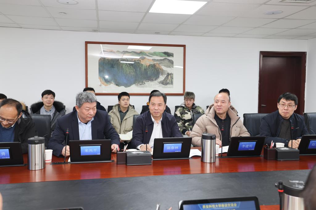 在与陕西延长石油矿业有限责任公司座谈交流时,来兴平教授向延长矿业公司长期以来对学校建设发展的大力支持表示感谢,详细介绍了“十四五”期间学校在团队建设、人才培养、科技创新、成果转化等方面情况,表示校企双方要进一步加强科研成果转化和产学研一体化合作,聚焦矿业公司高质量发展的卡脖子难点,在智能化快速掘进、超长工作面矿压防治、超高强度开采粉尘治理、富水煤层防治解危等领域持续开展点对点联合攻关,提升高校与企业协同创新效率,把学校技术成果转化为现实生产力,为陕西省高质量发展贡献力量。陈春林介绍了学校的办学历史和发展基本情况,对学校第十一次党代会主要精神和“十四五”发展规划做了解读和说明,希望校企双方保持沟通联系,进一步加强人才培养和科研方面的合作,取得更加突出的成果。