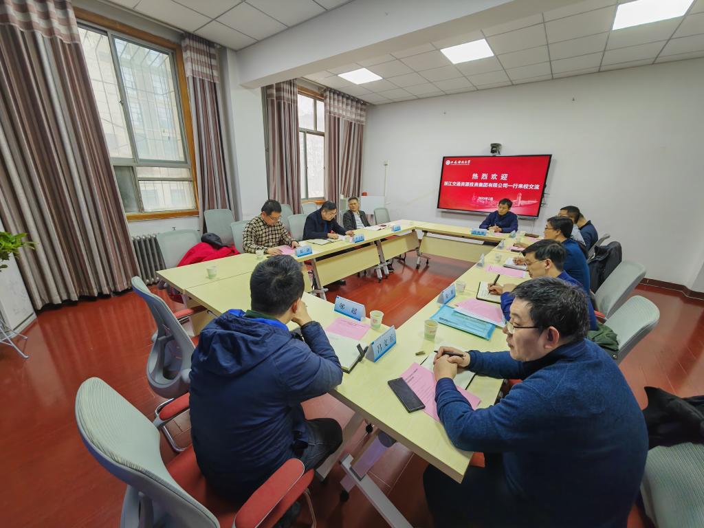 2月23日下午,浙江交通资源投资集团有限公司一行来公司参观调研,公司在雁塔校区309会议室召开校企产学研交流座谈会。浙江交通资源投资集团有限公司科技信息部总经理李卫炎、安全环保部总经理方伟民、投资发展中心副总经理郑剑等3人,公司党委书记陈吉兰、副经理朱明、丁自伟及各系系主任等7人参加了座谈会。会议由副经理朱明主持。