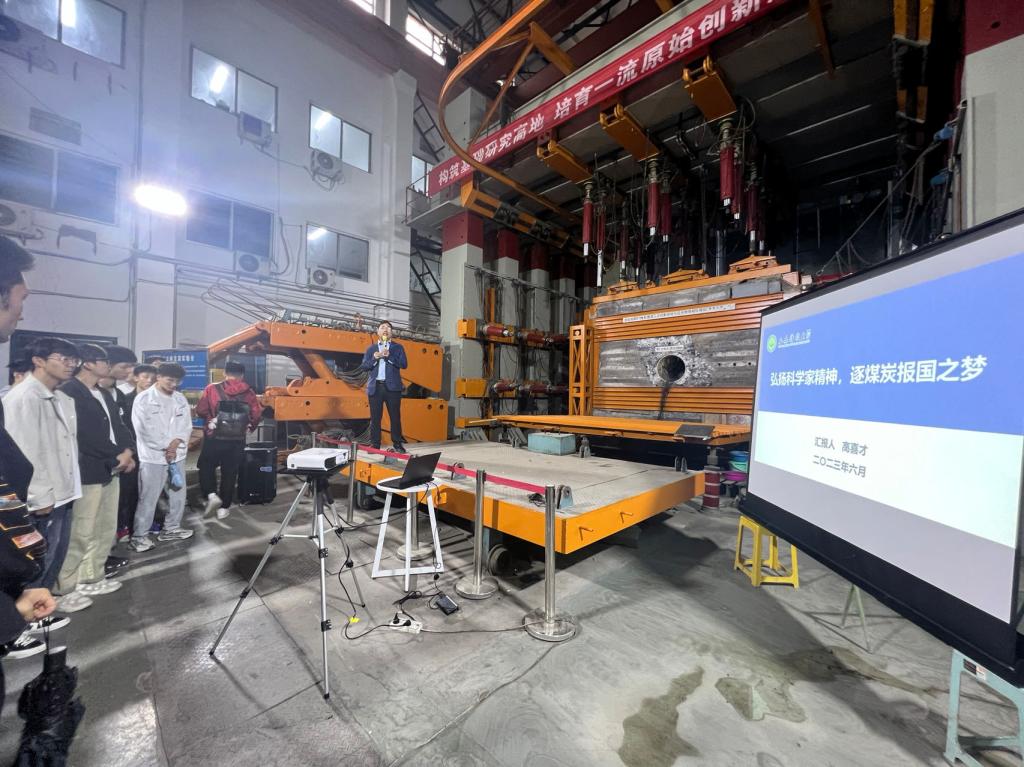揭牌仪式后,重点实验室副主任高喜才从新中国第一位采煤女专家吴绍倩教授的事迹展开讲解,引导同学们学习老一辈科学家“胸怀祖国、服务人民的爱国精神”“迎难而上、敢为人先的创新精神”“严谨治学、追求真理的求实精神”“淡泊名利、奖掖后学的奉献精神”。随后,999策略白菜网站大厅副经理解盘石介绍了难采煤层智能开采数字孪生实验平台,以及研究团队“迎难而上,求真力行”的科学精神。