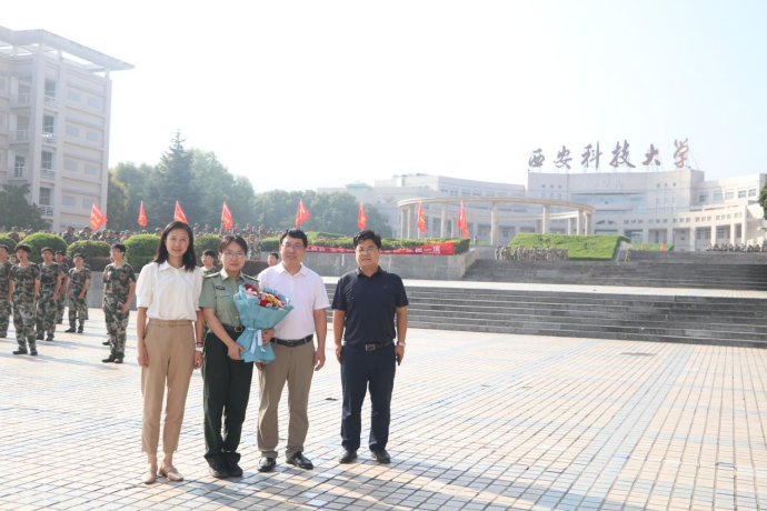 王贵荣副董事长在赵兵朝经理、人事处王文莉副处长、学院相关人员陪同下,深入骊山校园一号教学楼,走访躬耕教坛的姜华老师并送上鲜花表达节日的祝福;赵兵朝经理一行在员工工作办公室的陪同下,前往2023级本科生军训场,走访正在组织军训的辅导员王雪琪老师并送上教师节祝福。