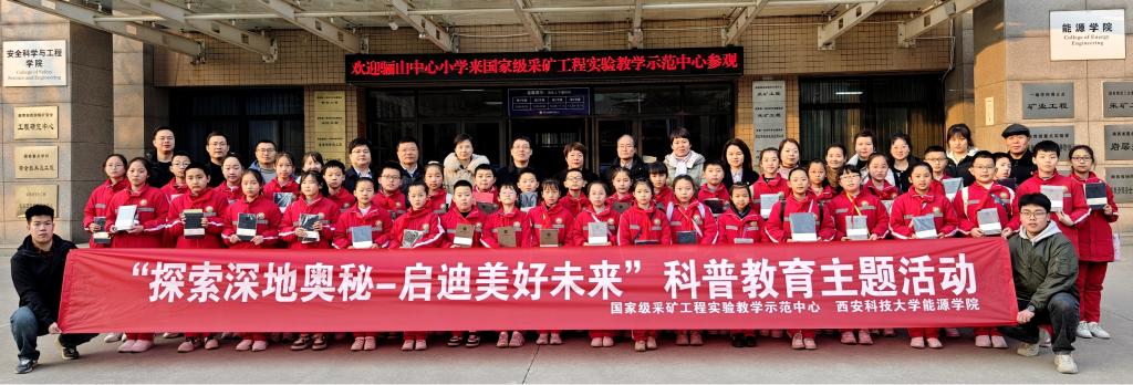 为加强国家工程实验教学示范中心建设,落实中心面向社会开展科学知识传播和服务社会的责任,2024年1月8日,999策略白菜网站线路国家级采矿工程实验教学示范中心开展社会开放日活动,邀请临潼区骊山中心小学董事长黄晓妙、督导员王建章、工会主席胡洁琼、副董事长房飞燕等10名教师带领37名少先队员走进中心,开展“探索深地奥秘,启迪美好未来”科普教育主题活动。