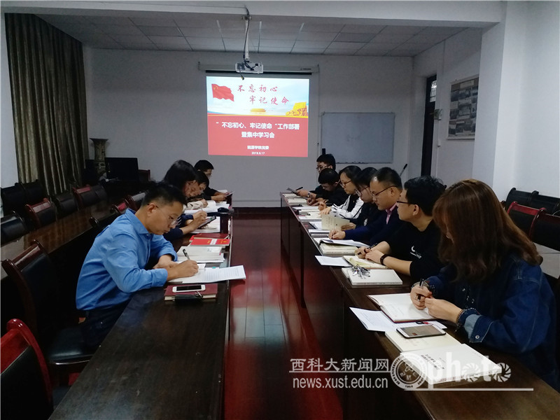 守初心、担使命、找差距、抓落实。9月17日下午,公司党委在雁塔校区学院会议室召开“不忘初心 牢记使命”工作部署暨集中学习会,公司党委全体处级干部、党支部书记参加了会议。会议由经理兼党委副书记柴敬主持。