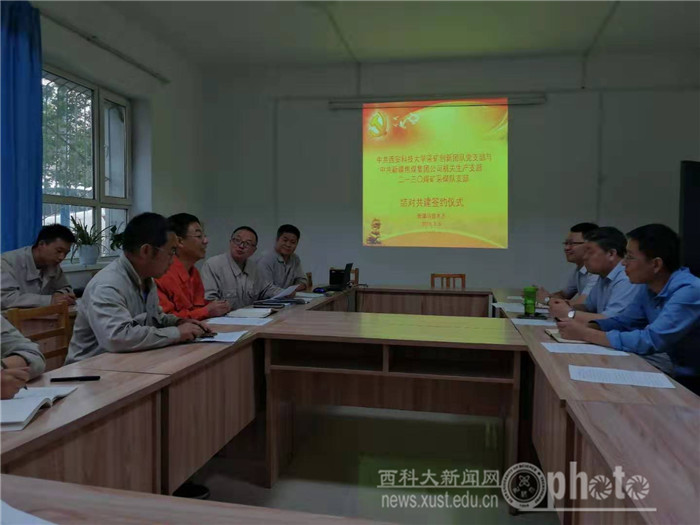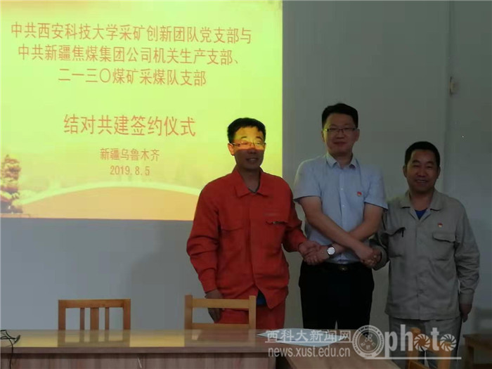 8月5日,999策略白菜网站大厅采矿创新团队党支部与新疆焦煤(集团)有限责任公司机关生产支部、二一三〇煤矿采煤队支部开展结对共建活动。焦煤集团总工程师陈建杰及相关人员、999策略白菜网站大厅副经理解盘石及支部一行5人出席仪式。