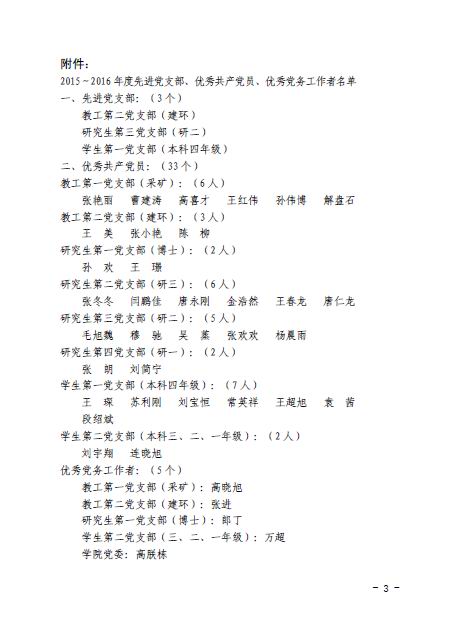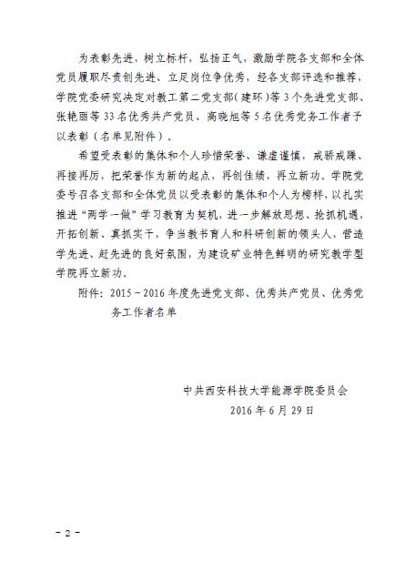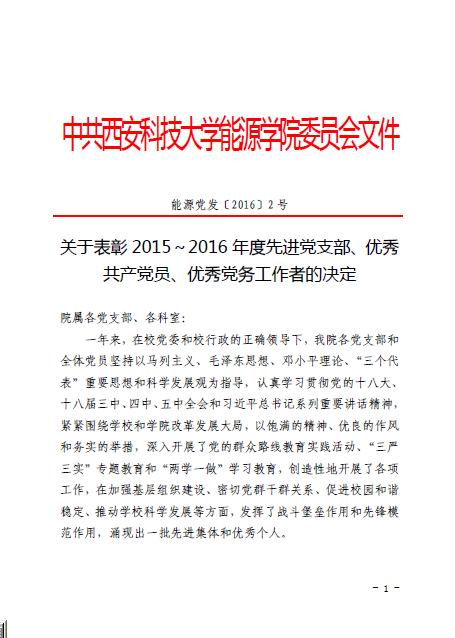 关于表彰2015-2016年度先进党支部、优秀共产党员、优秀党务工作者的决定