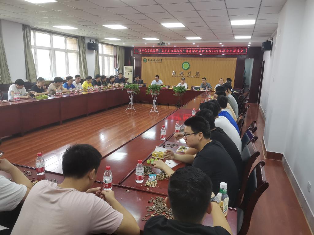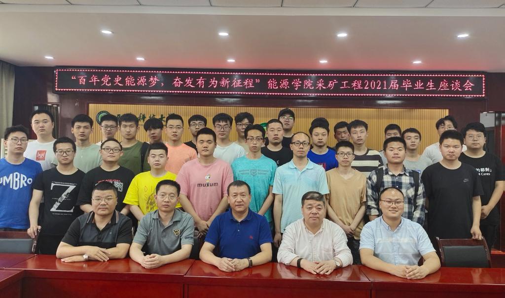 6月21日上午,公司在骊山校园14教学院会议室分批次举办了“百年党史能源梦,奋发有为新征程”2021届采矿工程毕业生座谈会,经理柴敬、党委副书记李绥波、副经理解盘石、采矿系副主任孙伟博,教师代表贠东风、毕业班辅导员吴蒸及2021届全体采矿毕业生参加座谈会,会议由采矿系主任丁自伟主持。