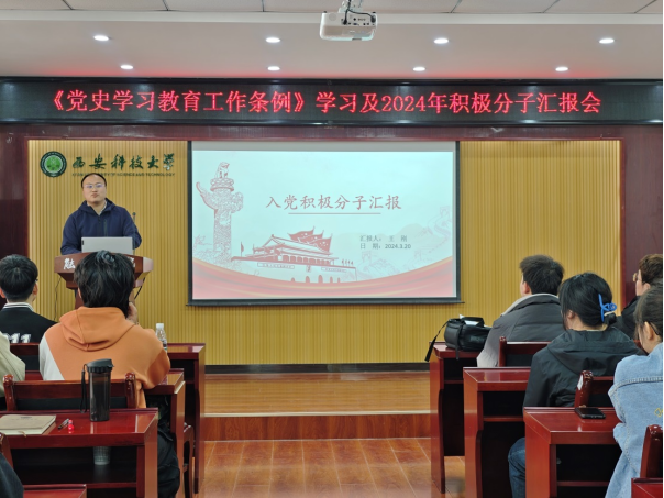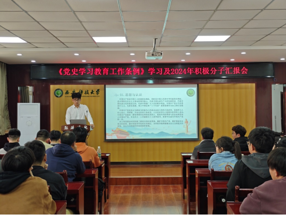 为持续推进党史学习教育,推动党史学习教育工作常态化长效化,更好地开展党员再教育和积极分子培养工作,3月20日,关于2020级、2021级本科生党支部在临潼校区骊山校园学院会议室举行了《党史学习教育工作条例》学习及2024年积极分子汇报会。全体党员和积极分子参加了会议,会议由支部书记吴蒸主持。