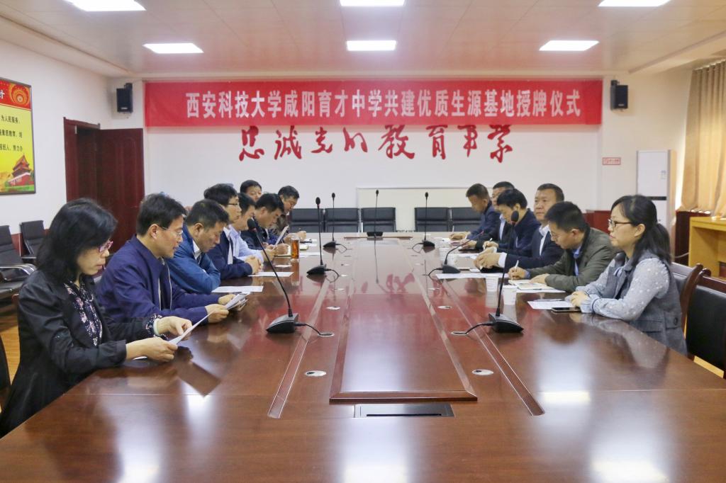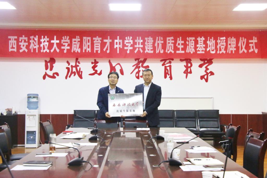 座谈会后,999策略白菜网站大厅经理柴敬代表学校与咸阳育才中学董事长邱健签订优质生源基地协议,并向其授牌。