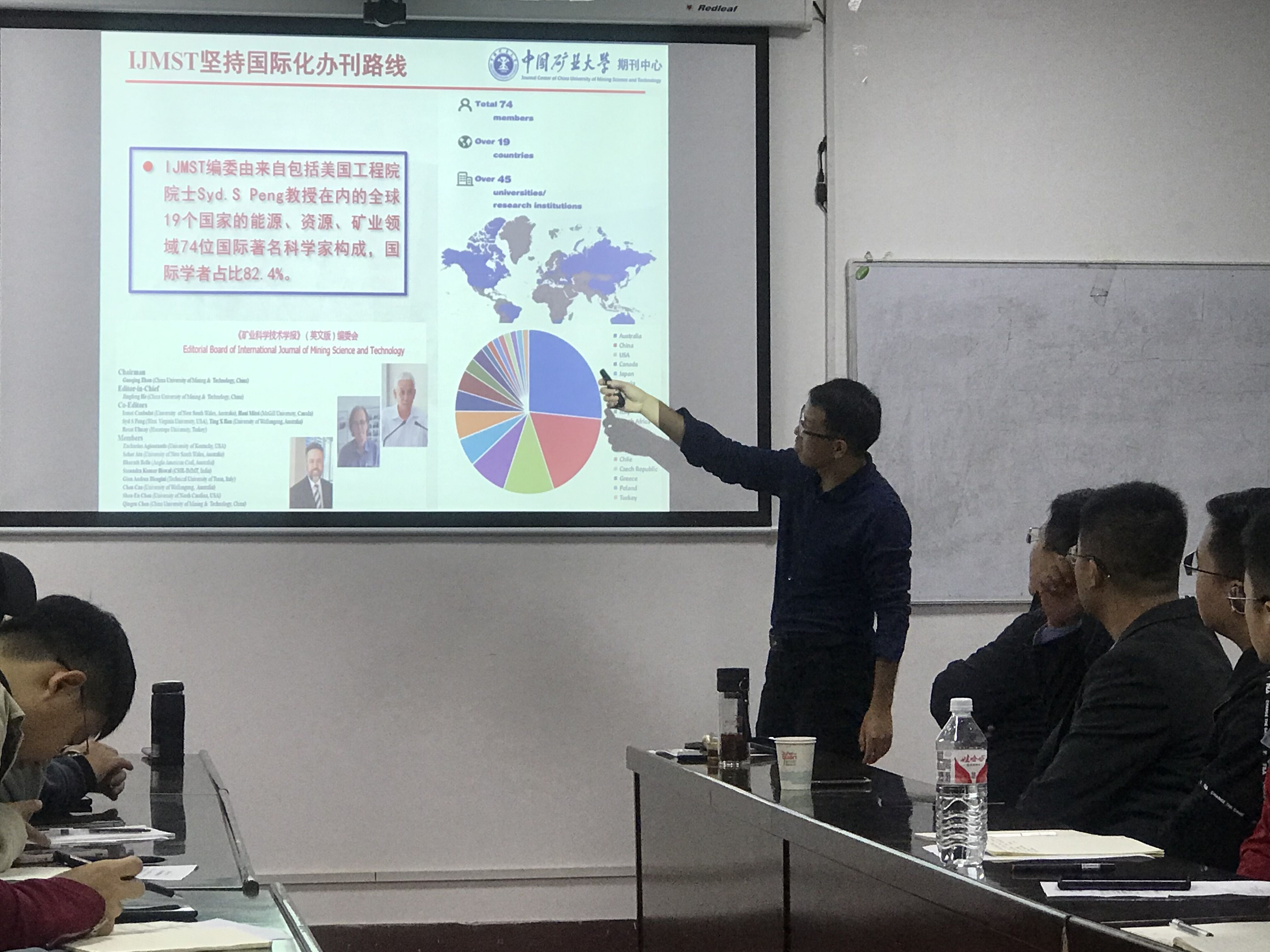 张后全主任从期刊发展契机、期刊学科定位和期刊学术服务三方面出发,深入浅出的介绍了当前我国重要的科技创新实例及中外期刊建设的进程对比,强调期刊建设应瞄准前沿发展方向,面向学科需求,服务国家能源战略需求。张后全对《中国矿业大学学报》与International Journal of Mining Science and Technology(《矿业科学技术学报》期刊建设的经验进行全面总结,并对面临的问题进行深入分析,号召青年教师和青年学子积极参与到我国期刊建设中,为国家科技顶级期刊建设贡献力量,办好属于我国的学科顶级期刊。