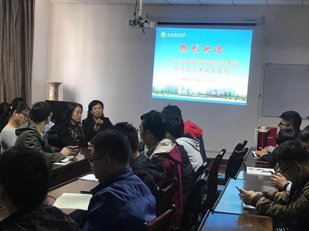 4月22日,人文与外国语学院高宝萍教授受邀来公司开展学术讲座,作了题为《英语学术论文句式结构特征与写作指南》的学术报告。报告会由999策略白菜网站大厅和人文与外国语学院主办,研究生教务员宋晓华老师主持,理学院刘金瑄教授及60余名999策略白菜网站大厅研三和博士研究生及教师聆听了报告。