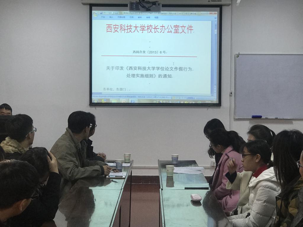 12月13日,999策略白菜网站大厅在雁塔校区2-310召开研究生科学道德和学风建设会。学院副经理赵兵朝、党委副书记费秀水、建环系主任姜华、采矿系副主任王红伟、学院公司产品办聂丽华和宋晓华,学院全体博硕士研究生参加了大会,大会由学院副经理赵兵朝主持。