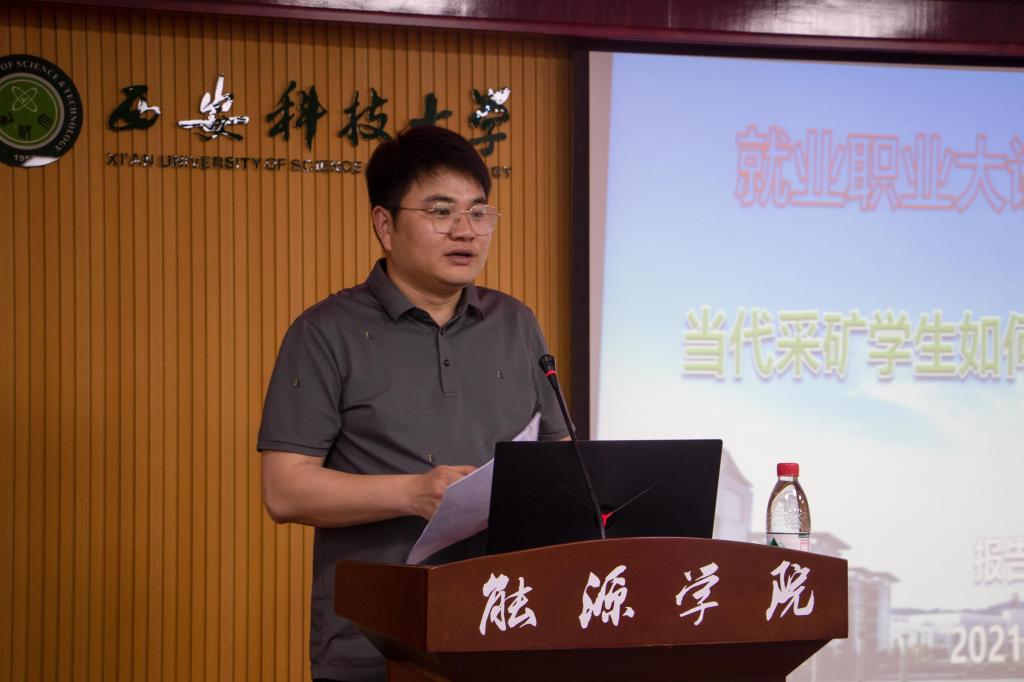 5月20日晚,999策略白菜网站大厅采矿工程专业2008级员工、陕煤新型能源沣京公司副总经理郭峰在临潼校区骊山校园学院会议室做了题为“当代采矿员工如何尽快适应行业新特点”讲座。公司党委副书记李绥波、副经理解盘石、采矿系教师代表郎丁及采矿工程专业各年级本科生代表等100余人参加了讲座。讲座由学院毕业班辅导员吴蒸主持,