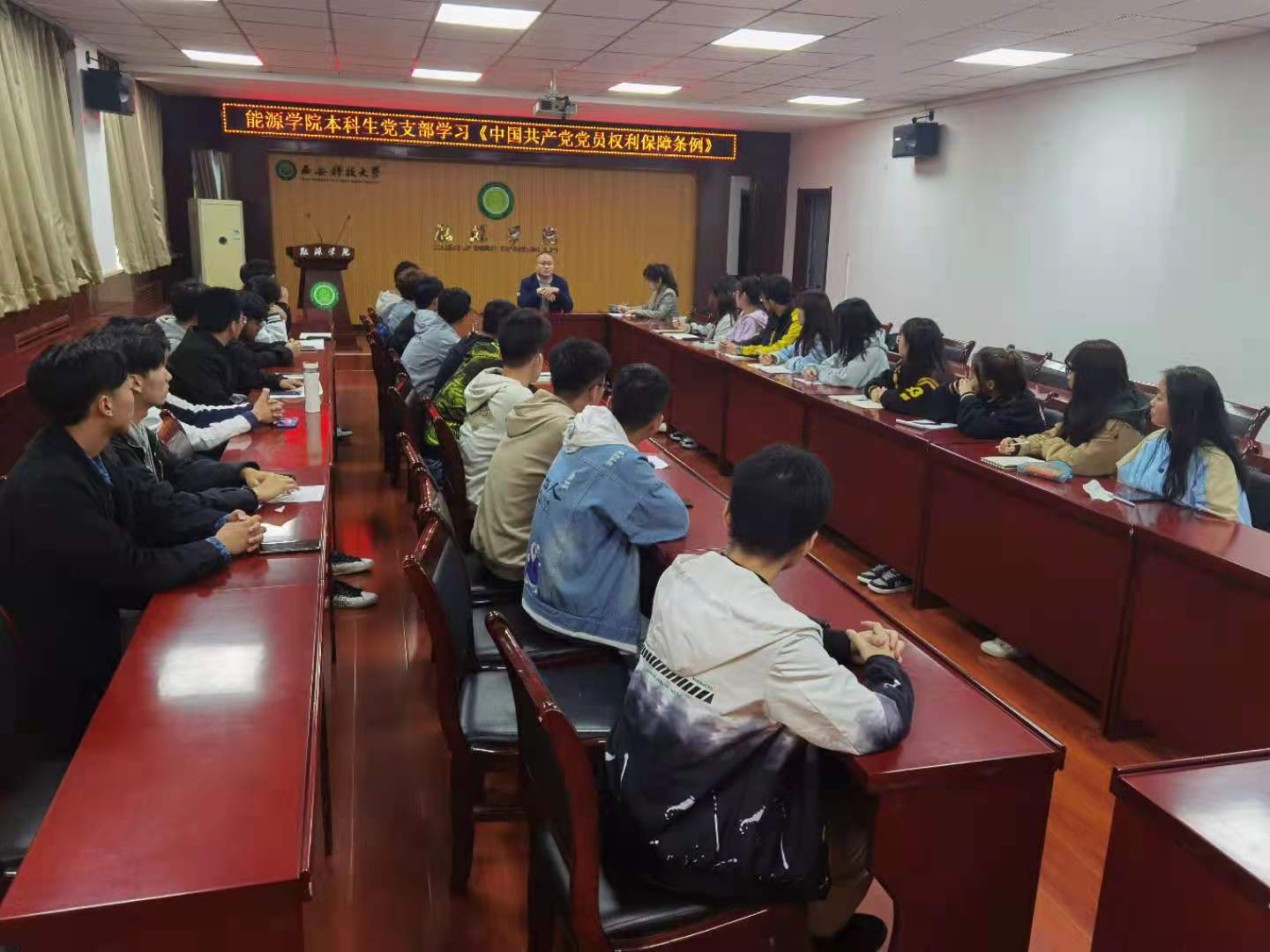 为深入学习贯彻新修订的《中国共产党党员权利保障条例》,不断强化党员权利意识,4月14日,关于2017级、2020级本科生党支部在骊山校园学院会议室组织开展学习《中国共产党党员权利保障条例》活动,会议由支部书记吴蒸主持,全体党员参加。