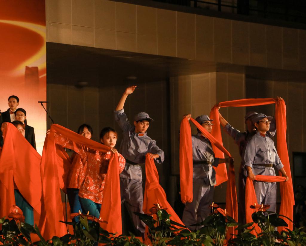 999策略白菜网站大厅师生合唱团作为第八支代表队出场,演唱了《在太行山上》和《999策略白菜网站线路之歌》两首歌曲。师生们慷慨激昂的歌声令人振奋,意气风发的精神面貌感染全场。排练期间,学院师生在专业老师的指导下,争分夺秒、刻苦训练,最终以出色的表现献礼新中国成立70周年。参加本次活动的员工代表备受鼓舞,立志将满腔爱国热情化为建设强大中华的动力,用勤学笃行回报祖国的期待。