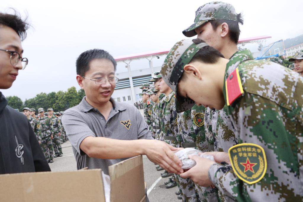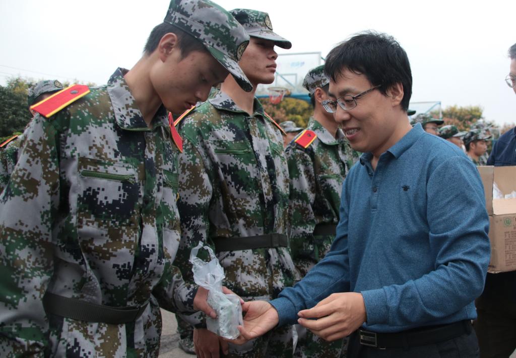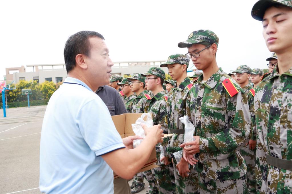 9月11日,军训旅一营营长兼教导员、公司党委书记陈吉兰,经理柴敬,副经理赵兵朝、解盘石,院学工办主任、团委书记万超及辅导员赵森在骊山校园新生军训训练场看望慰问一营全体参训教官和学员。