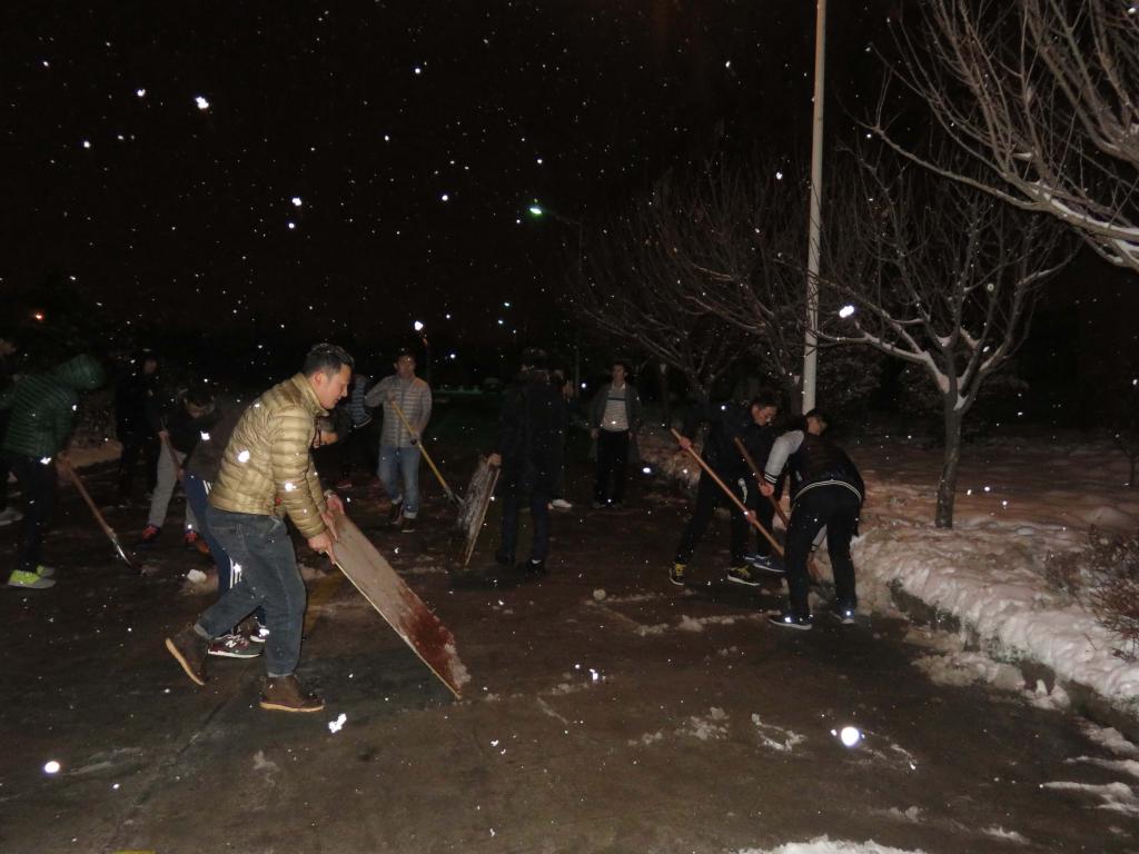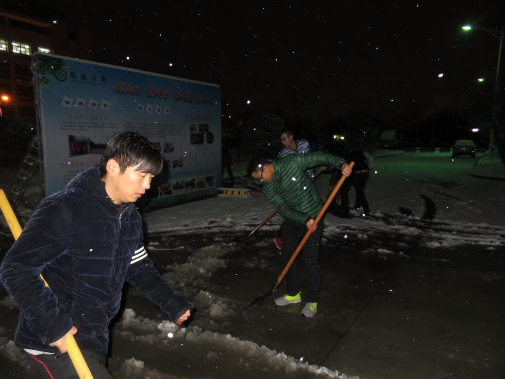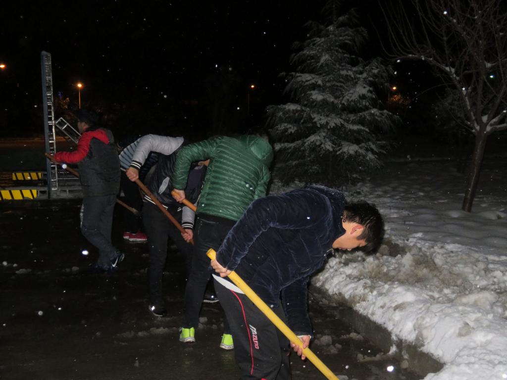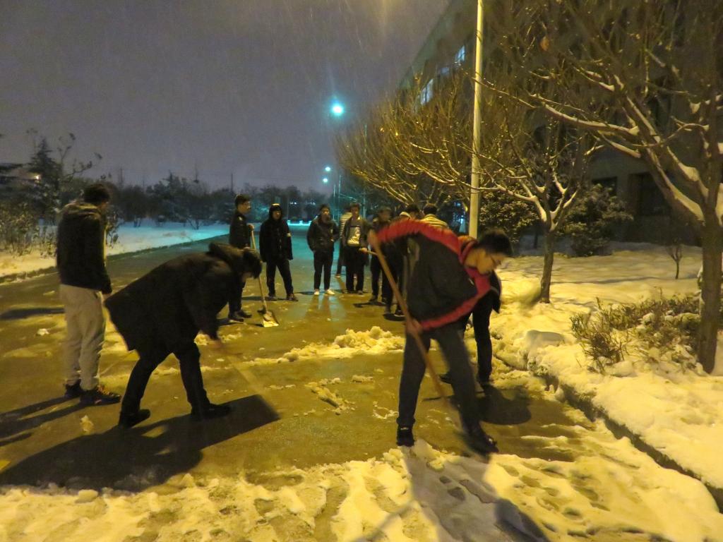 下午19时至21时,在公司师生的共同努力下,经历了长达两个小时的战斗14教楼下的积雪被完全清除。