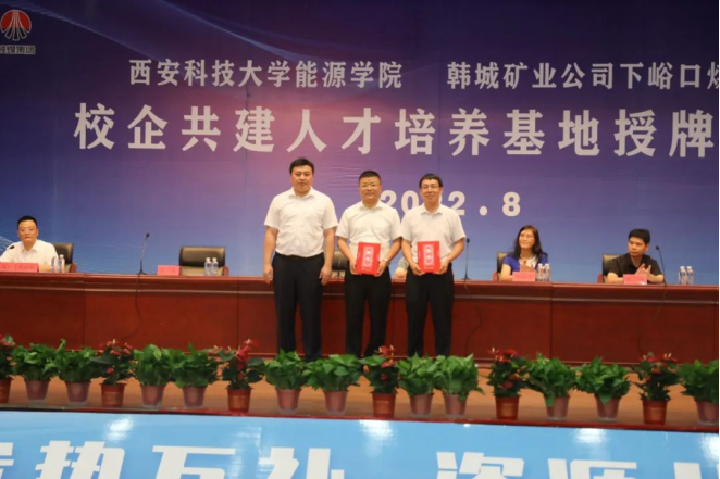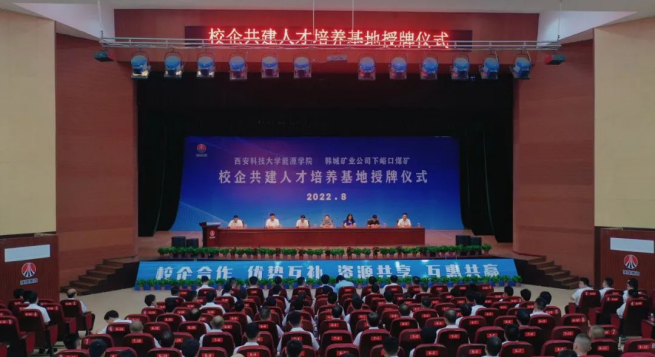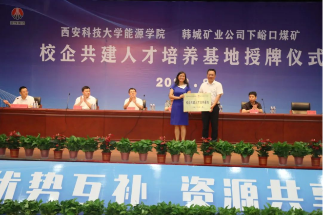 8月2日,公司与韩城矿业公司下峪口煤矿举行校企共建人才培养基地签约授牌仪式,为实现“校企合作、产学共赢”迈出了重要的一步。公司党委书记陈吉兰、经理赵兵朝、副经理丁自伟、团委书记万超、采矿系副主任杨涛、韩城矿业公司党委委员、副总经理刘新民,人力资源部部长贾谦、下峪口矿党委书记李成、矿长张杰等相关负责人出席授牌仪式。