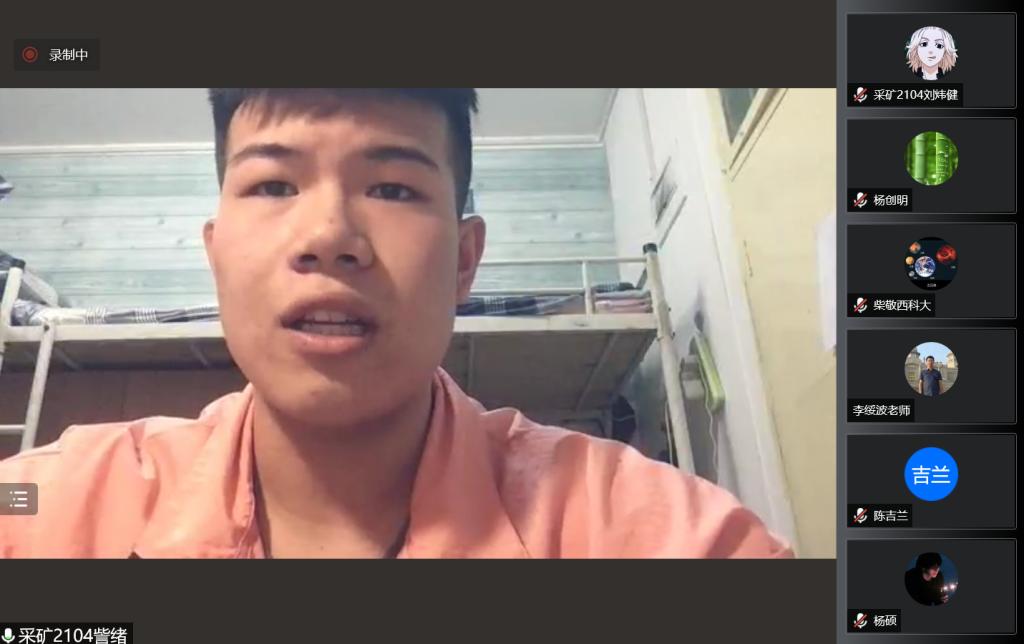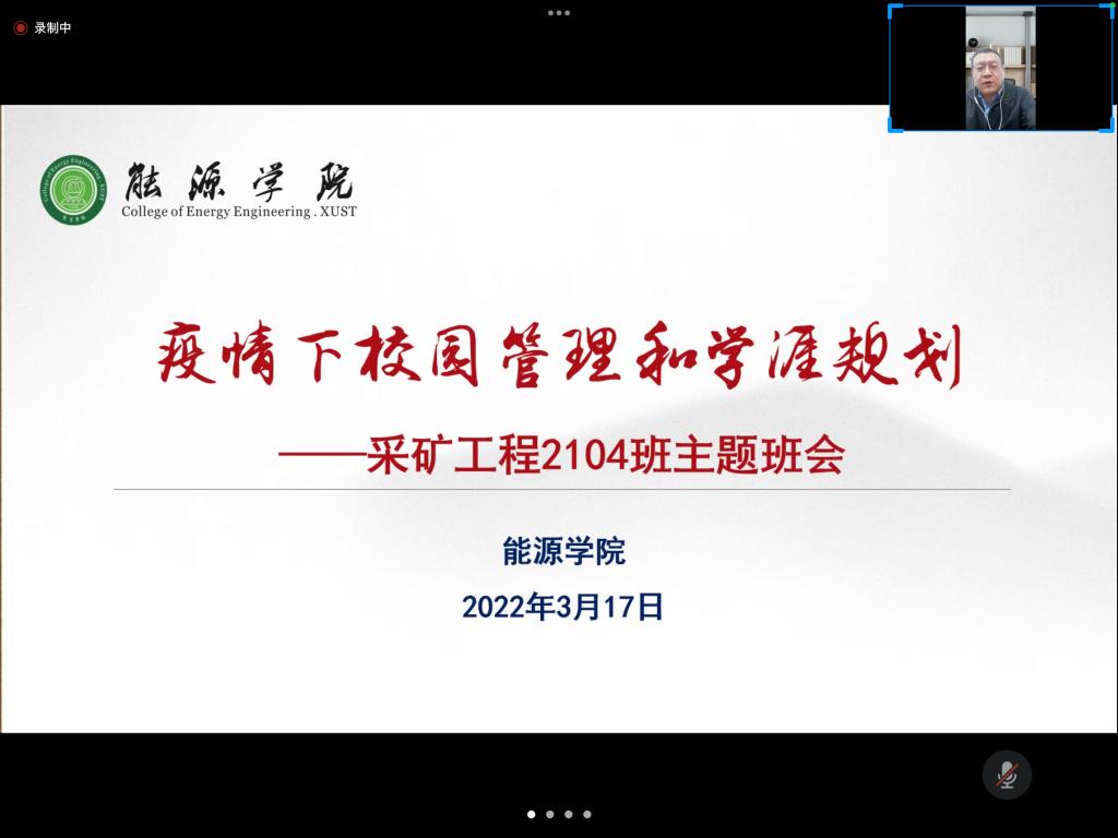3月17日晚,公司党委书记陈吉兰、经理柴敬线上给采矿2104班召开了“疫情下校园管理和学涯规划”主题班会,党委副书记李绥波,院办主任、公司党委组织员杨创明,班主任杨涛以及采矿2014班全体同学参会。班会由辅导员吴蒸主持。
