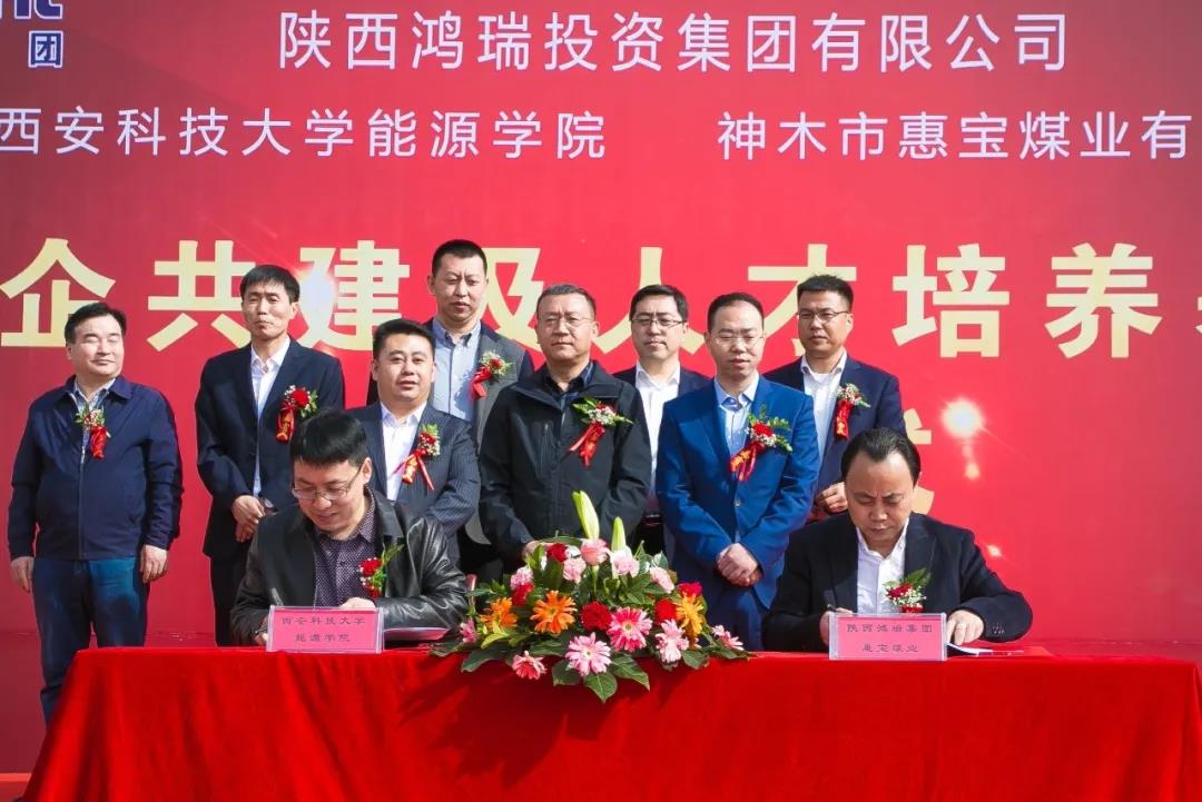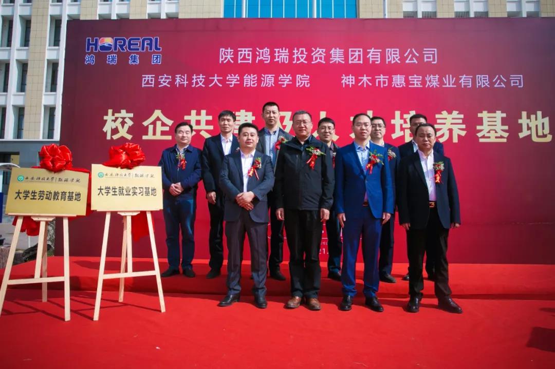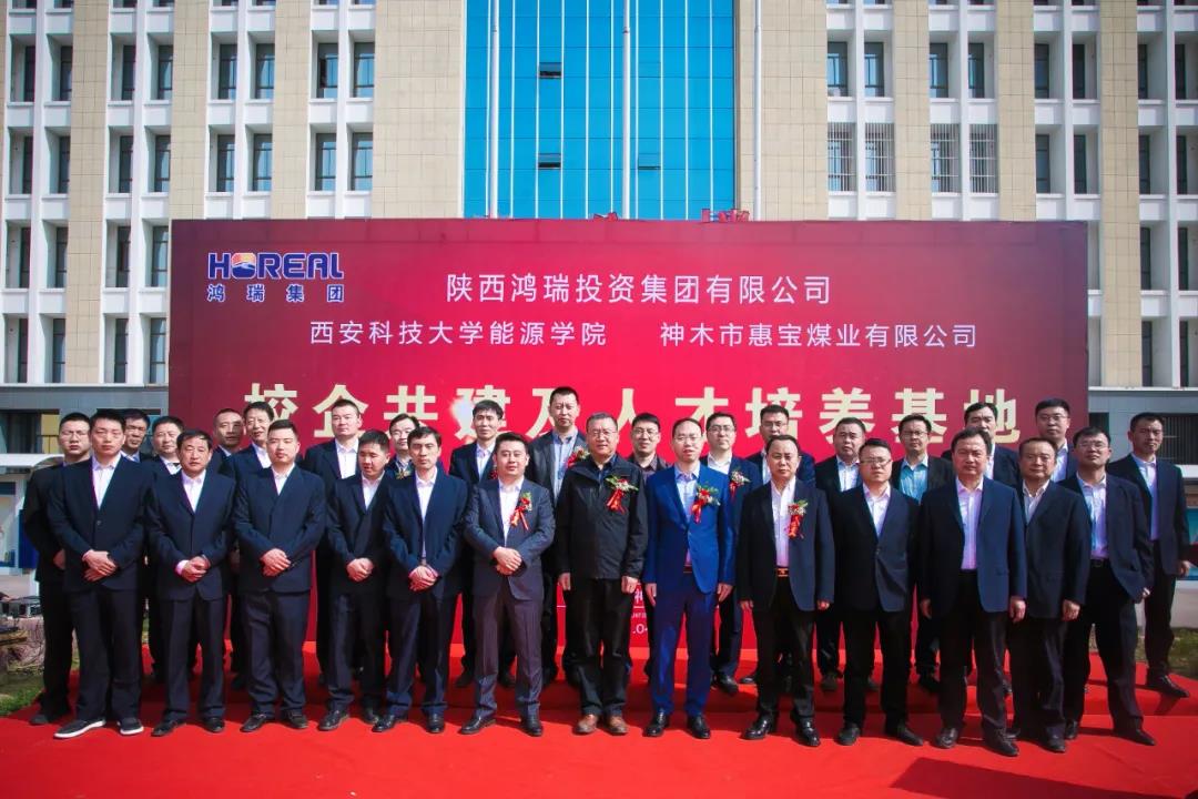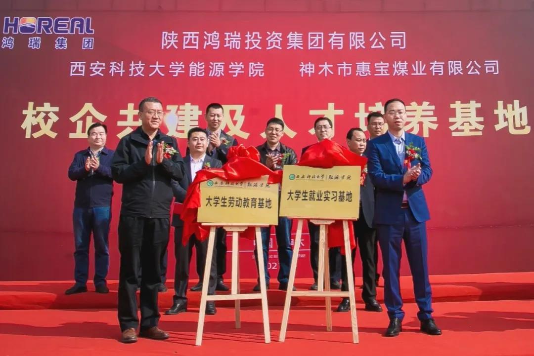 4月23日上午,999策略白菜网站大厅与鸿瑞集团惠宝煤业校企合作签约仪式及人才培养基地揭牌仪式在榆林神木举行。神木市能源局副局长张金贵、鸿瑞集团总裁周茂勤、惠宝煤业董事长高计军、惠宝煤业矿长姜军等企业领导,999策略白菜网站大厅经理柴敬、公司党委副书记李绥波、副经理赵兵朝等参加了签约仪式。惠宝煤业上百名员工代表参加此次活动。