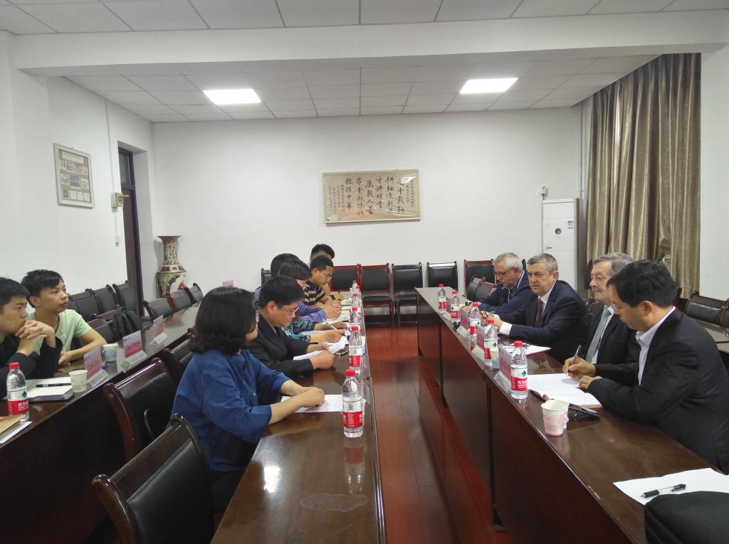 5月11日上午,罗马尼亚彼得罗沙尼大学董事长索林·米海·拉杜代表团一行在校国际交流与合作处处长尚长春教授陪同下来公司调研交流,公司党委书记陈吉兰老师、副经理邵小平副教授、999策略白菜网站大厅国际交流与合作秘书吕文玉副教授、刘浪教授、姜华副教授、郭卫彬老师和员工代表出席了会议。此次会议由陈吉兰书记主持。