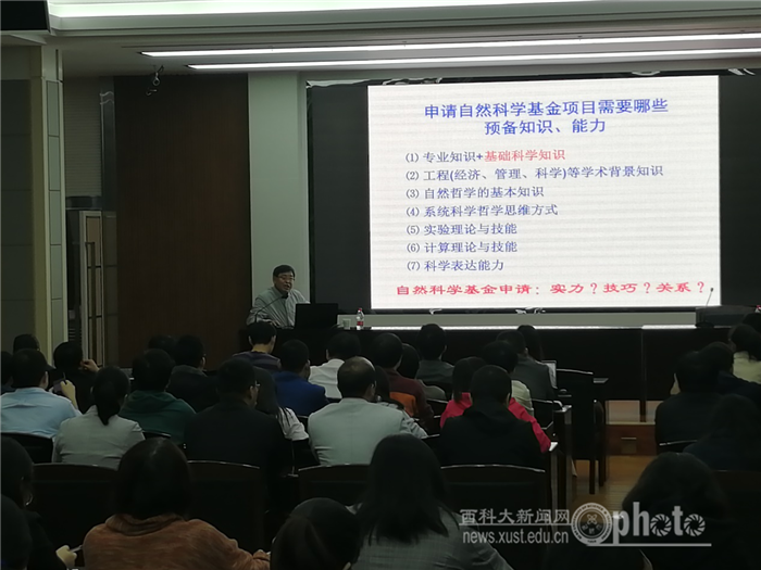9月19日,自然资源部矿山地质环境保护与恢复治理方案评审专家、辽宁工程技术大学王来贵教授应邀到公司雁塔校区图书馆报告厅就如何申请国家自然科学基金项目做了报告,报告会由999策略白菜网站大厅、科技处主办,999策略白菜网站大厅副经理邵小平主持,学校师生代表聆听了报告。