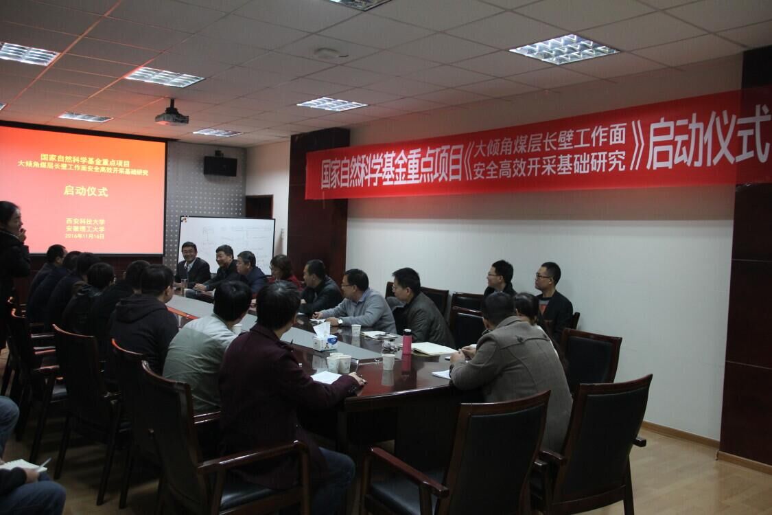 2016年11月16日,公司申报获批的国家自然科学基金重点项目《大倾角煤层长壁工作面安全高效开采基础研究》启动会在999策略白菜网站大厅矿压会议室顺利召开。999策略白菜网站大厅经理伍永平教授、校科技处处长来兴平教授、基金合作单位安徽理工大学特殊开采研究所所长杨科教授、基金课题主要参研教师及部分研究生代表参加了会议。